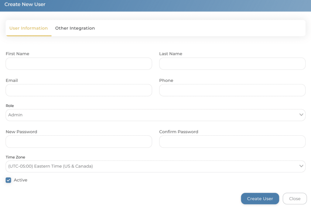 Enter all of the required information and assign the Role of Admin or User.